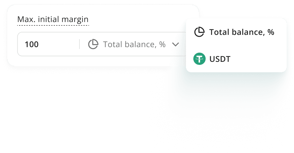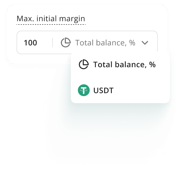 The maximum initial margin feature helps contain the total volume of placed orders by your bot, providing smart control over open positions.