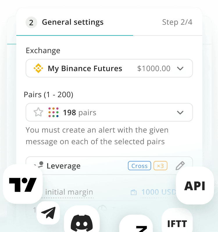 Read articlesTurn your alerts from TradingView indicators, PineScript, Java and Python scripts, On-chain & sentiment analysis tools, automators like IFTTT into executed orders in your exchange account.